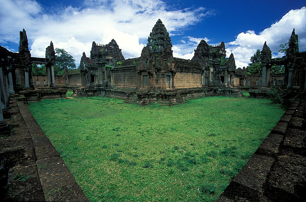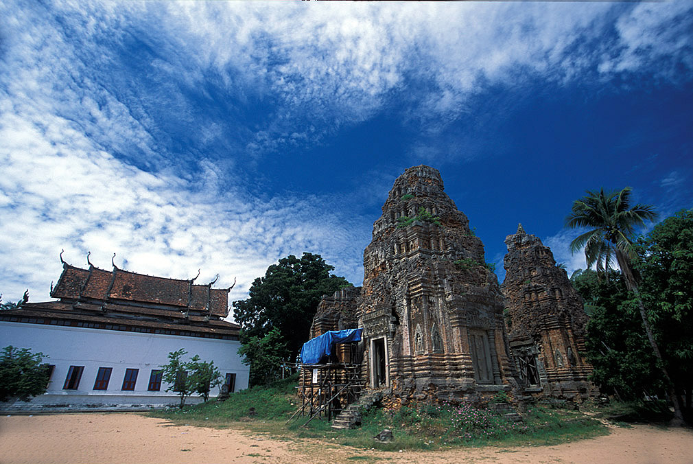 The inner moat is made of laterite and it comprises of four gopuras. The seven headed naga can be found on the side of the entrance causeway. The innermost enclosure is surrounded by a laterite wall and it includes the central temple pyramid. You can view eight temple towers made of bricks, four on each side of the central temple. There is also a modern Buddhist temple outside the eastern gopura. The brick towers have their original supporting beams made of wood and they remain unaffected for years.
