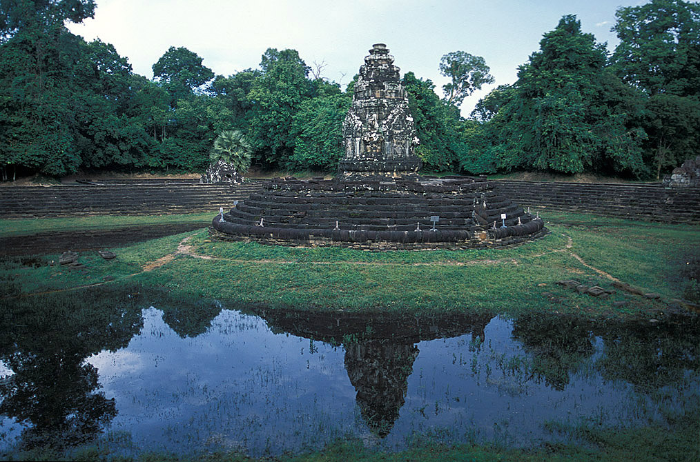 Neak Pean is one of the renowned Buddhist temples in Angkor, Cambodia. It is located on an artificial island. It was built by Jayavarman VII at the end of 12th century. The term “Neak Pean” means “the entwined serpents”. As the sculptures of snakes run around the base of the temple structure, it derived that name. This temple was originally designed as a hospital and then it was transformed to a Buddhist temple. It is different from other temples in Angkor, as it was located on an island in the middle of the man-made reservoir.